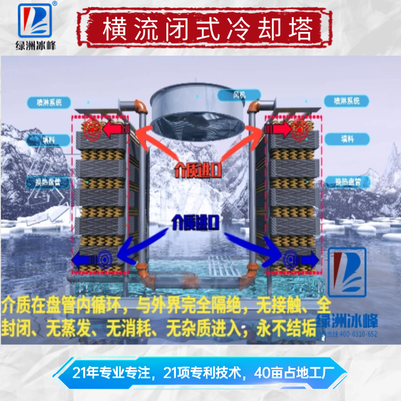逆流闭式冷却塔不结垢无蒸发无杂质-20年专业生产16项专利技术