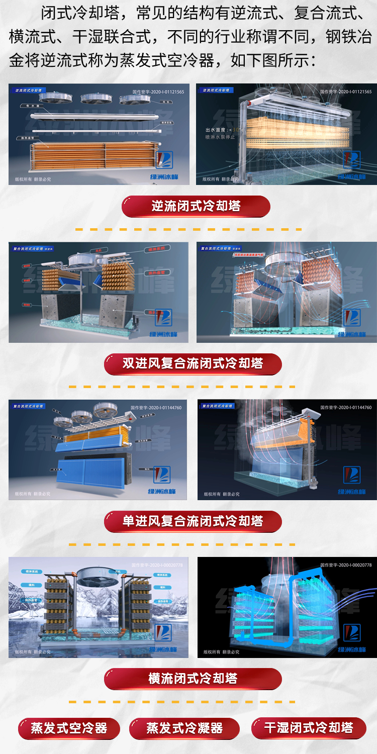 复合流闭式冷却塔\单进风复合流\双进风复合流\换热效率高\冷却效果好